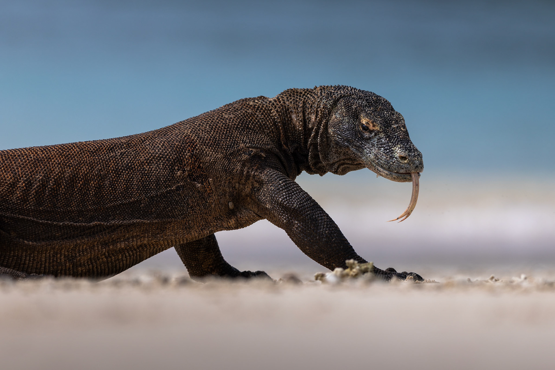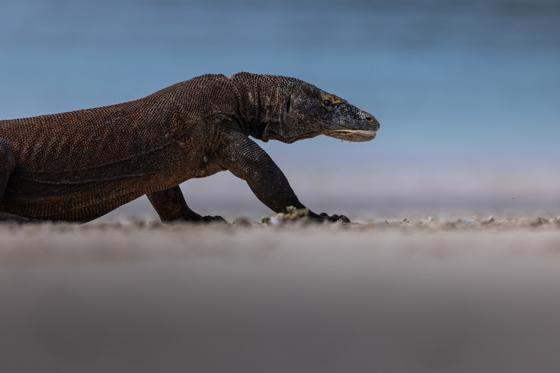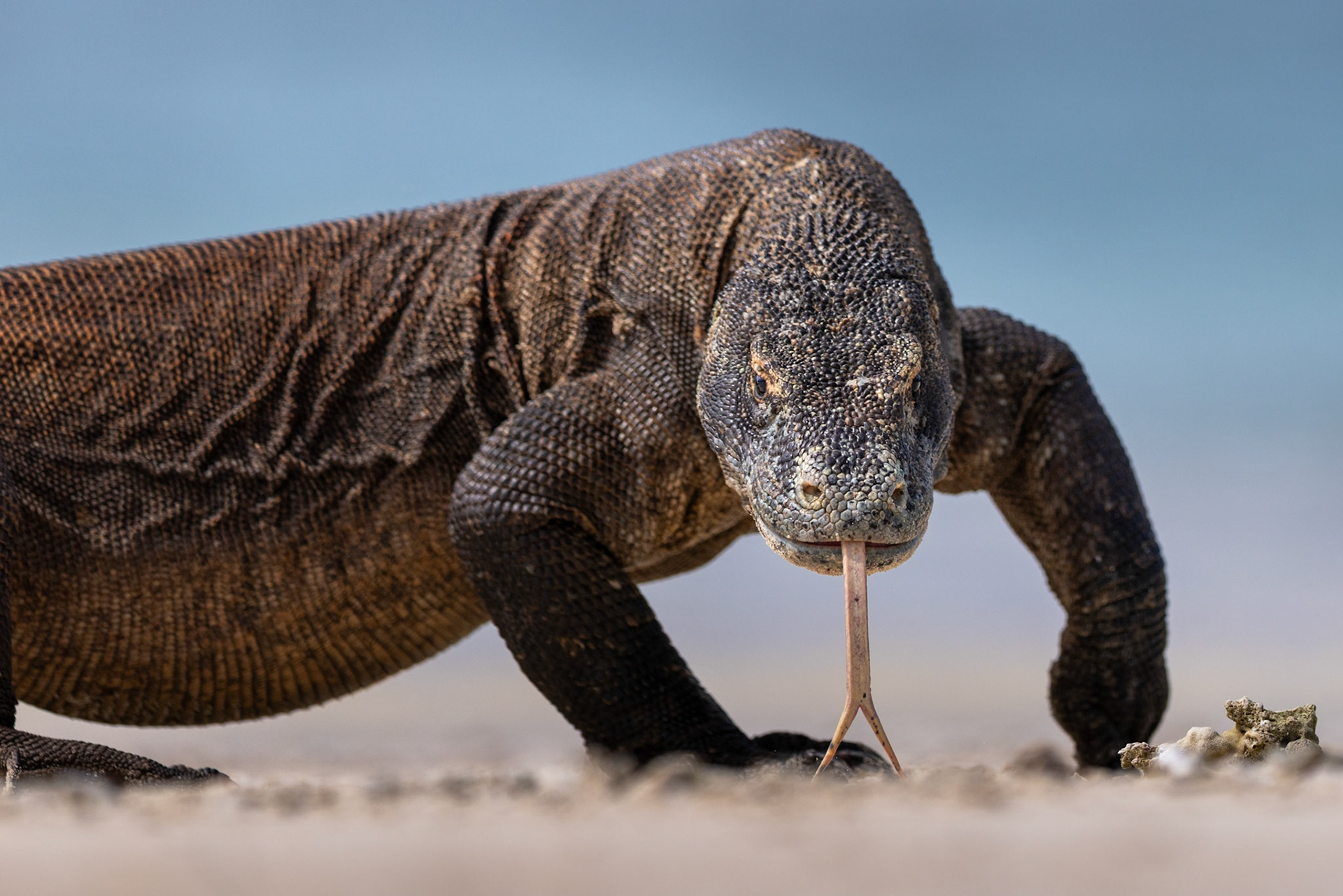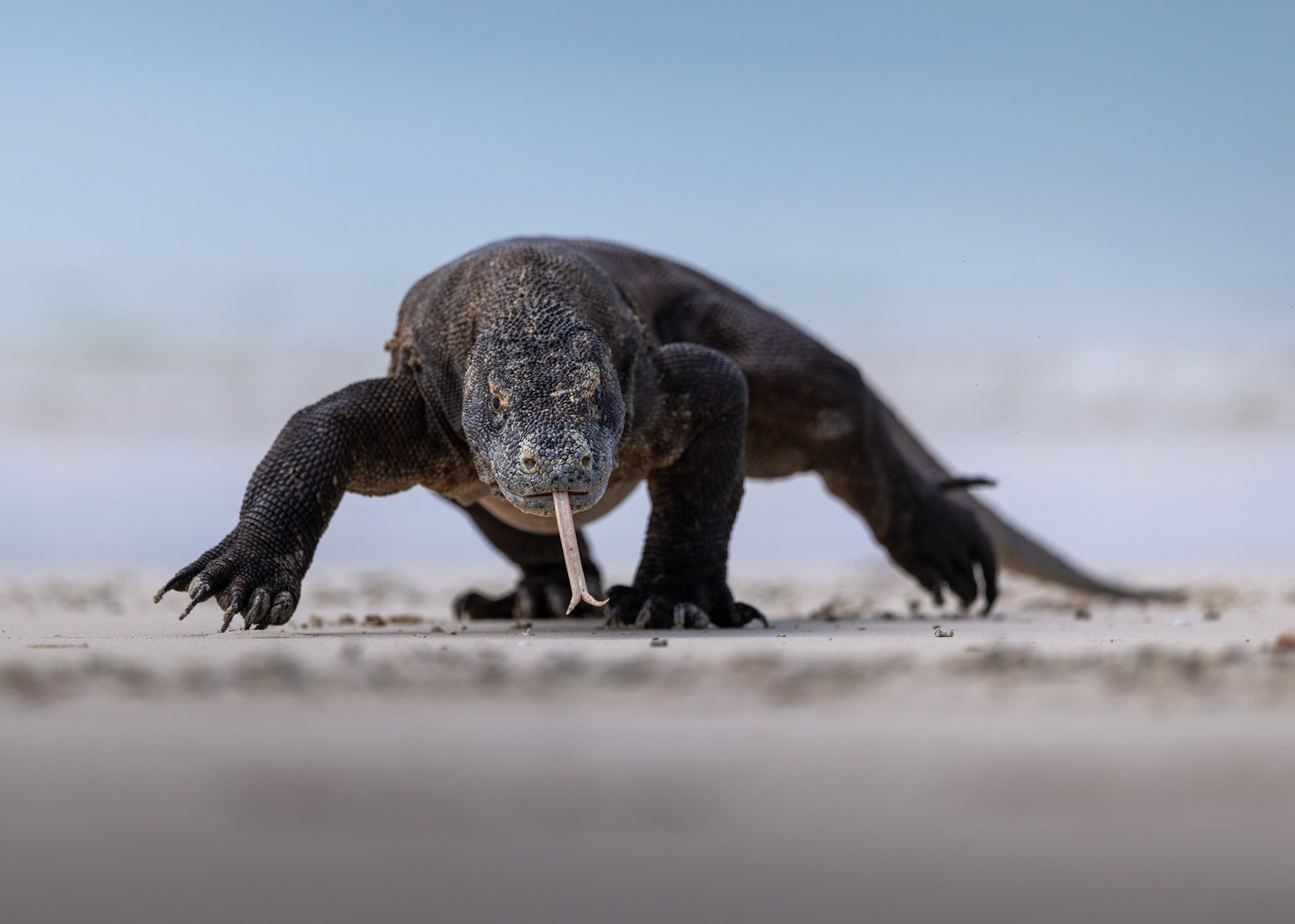 "The environment of Labuan Bajo in the Komodo Islands is so dreamy it feels entirely otherworldly. During my January 2026 expedition, I found myself completely overwhelmed by the sheer privilege of documenting the world’s most formidable reptile in its untamed habitat. Encountering this giant beast as close as thirty feet out on the open sands of the Pink Beach was a stroke of immense luck—and the beginning of a dangerous, high-stakes game of hide and seek. Adrenaline completely overpowered any sense of exhaustion. Chasing the shot meant repeatedly dropping to the earth, laying flat on the ground to meet the apex predator at its own level. Looking through my lens, there was an absolute, spine-chilling tension as the massive dragon locked eyes with me and began walking straight toward my camera. This collection is born from those breathless moments - a raw, unfiltered glimpse into the heavy, prehistoric power of a creature that still rules its Jurassic realm."