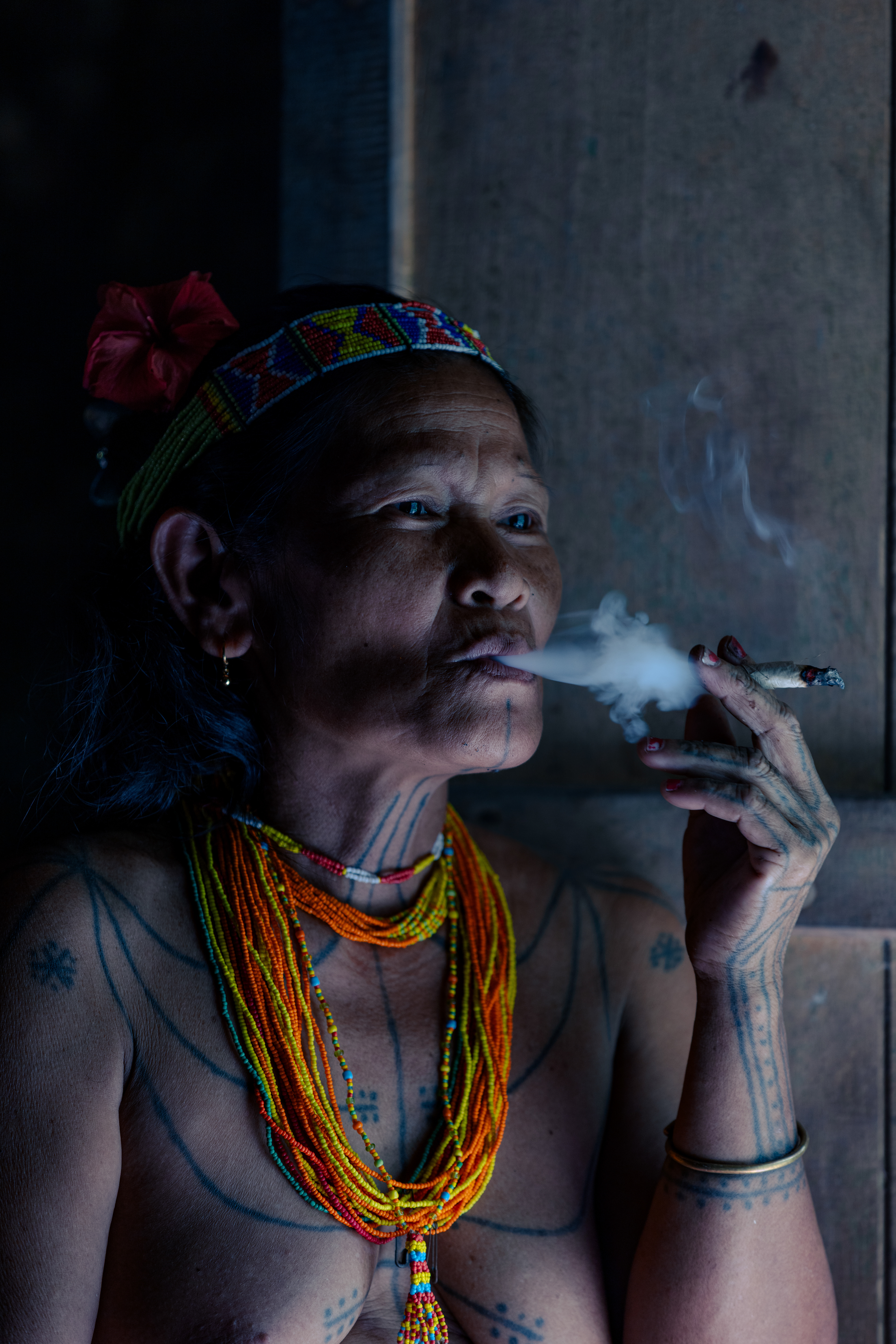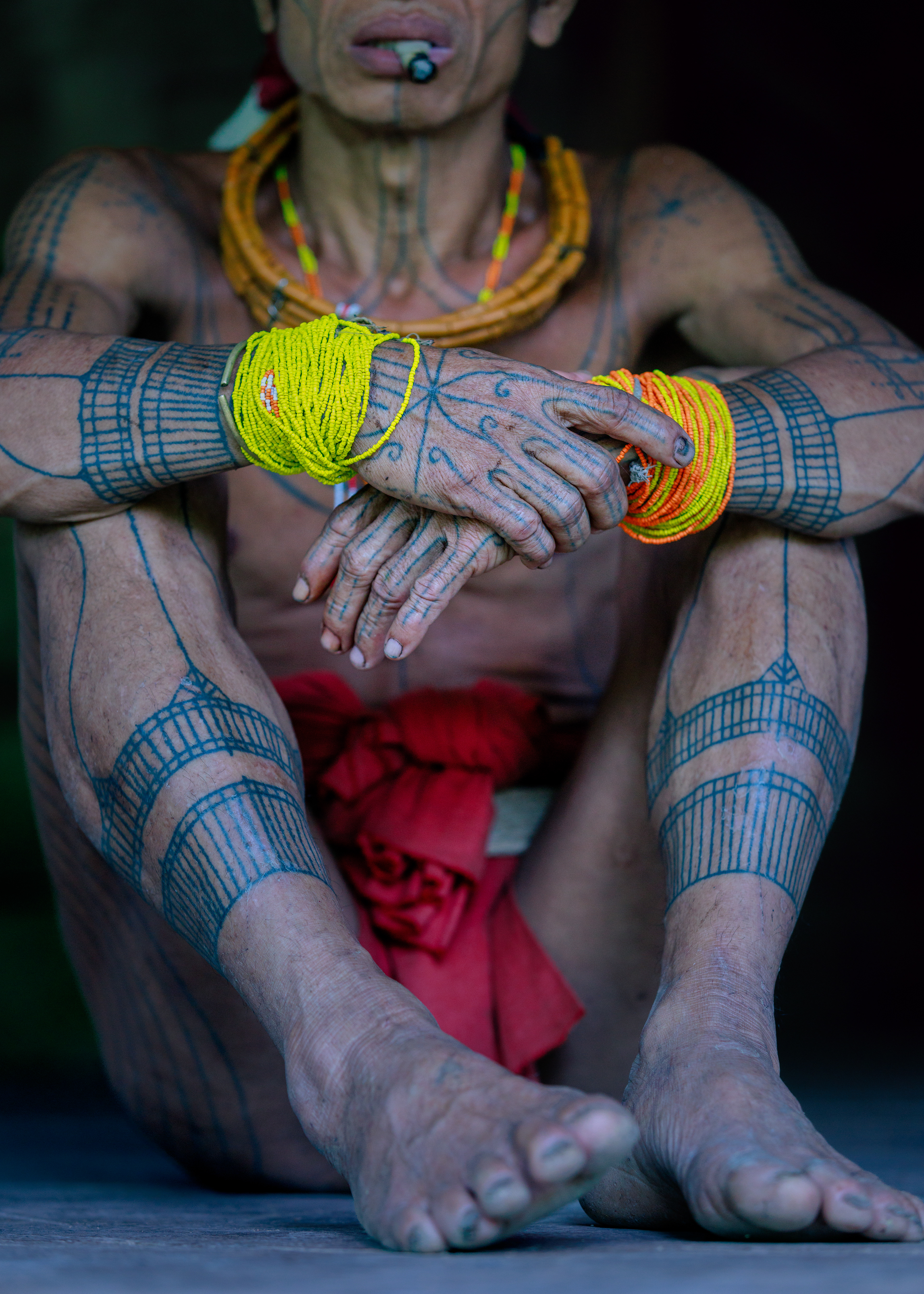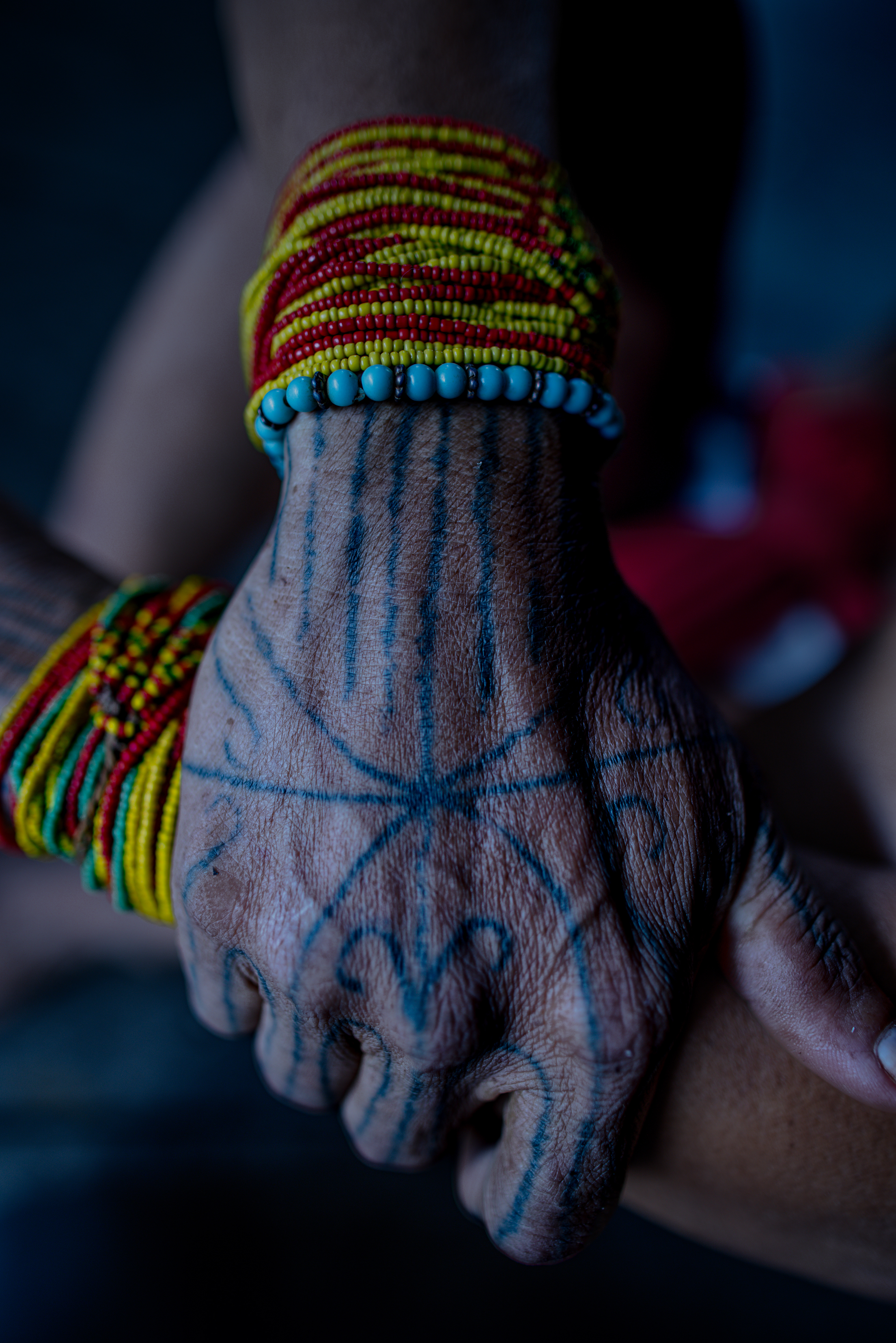 eins of History — As the ritual chant begins, the connection to the ancestors deepens. The traditional tattoos etched into their skin serve as a living map of their lineage, acting as spiritual conduits for the ancestors whose memory is now being honored.
