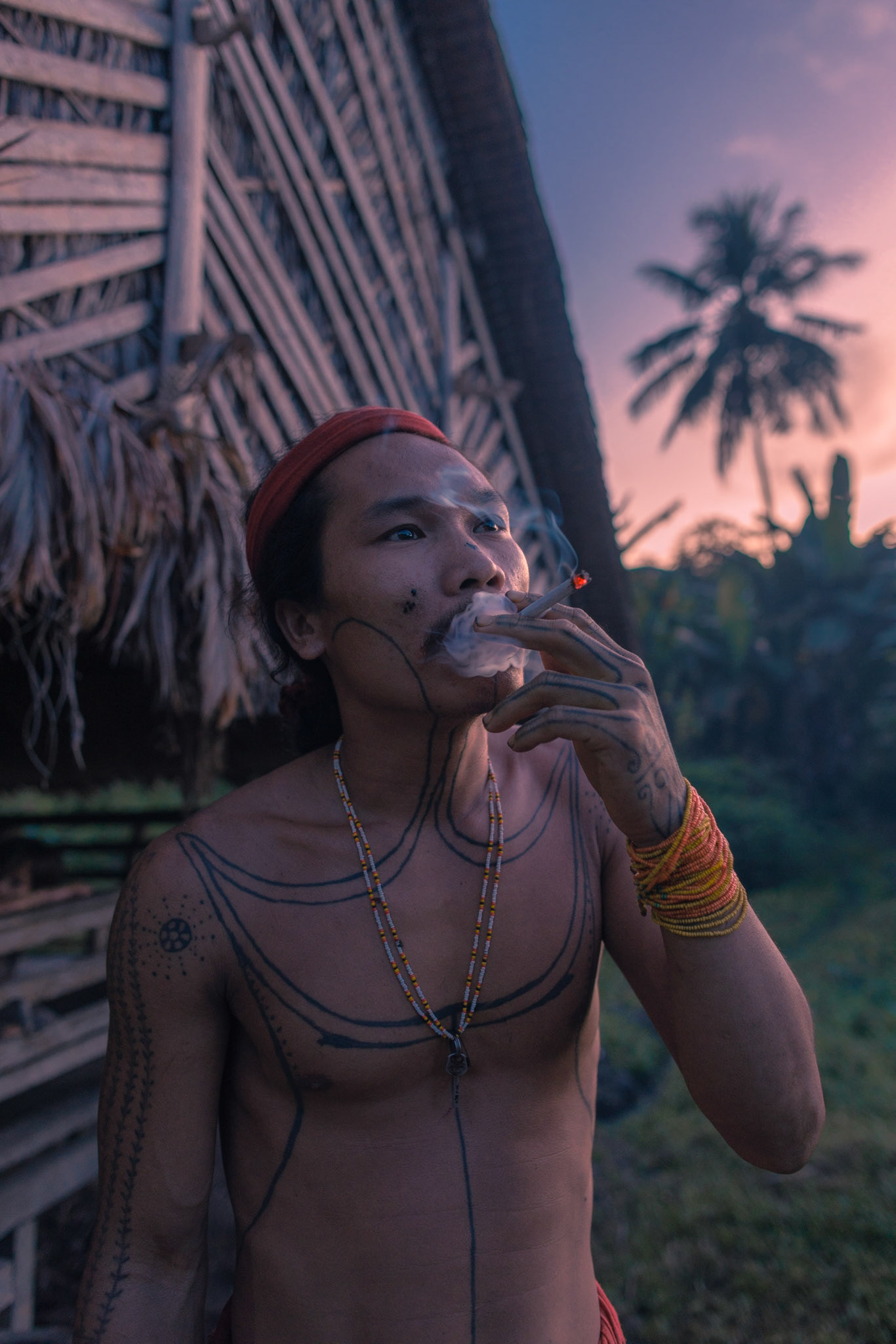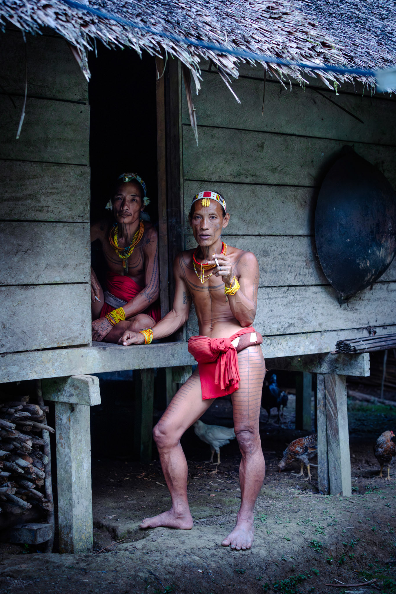 The Shaman’s Crouch — Inside the safety of the Uma (longhouse), a shaman rests in a traditional squat. This posture, comfortable for hours on end, keeps him ready to spring into action while allowing him to stay grounded near the hearth.